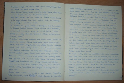 Irgendwann hatte ich die Idee, nicht mehr am Computer zu schreiben, sondern mich dazu zu zwingen, nicht jeden Satz zigmal zu überarbeiten: Ich wollte wieder ganz altmodisch mit einem Stift auf Papier schreiben, und um mich von einem ständigen Durchstreichen zu bewahren, kaufte ich mir ein tolles, teures Notizbuch, das mir zu schade für permanente Änderungen gewesen wäre.