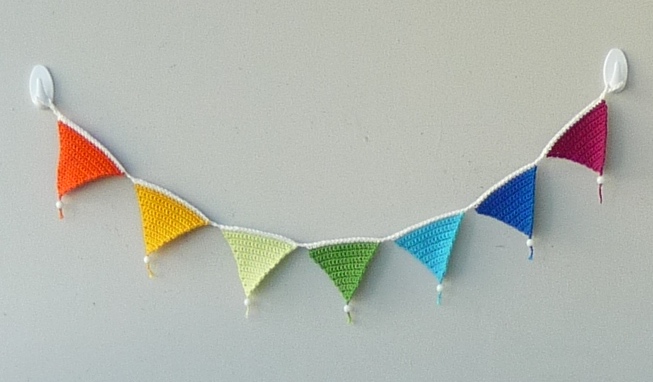 Statt Streifzugfotos gibt es also nun Balkonfotos. Zunächst mal habe ich einen Rat von Natira befolgt und an einer der Seitenwände Haken angeklebt, um die (nochmal neu zusammengehäkelte) Wimpelkette befestigen zu können: