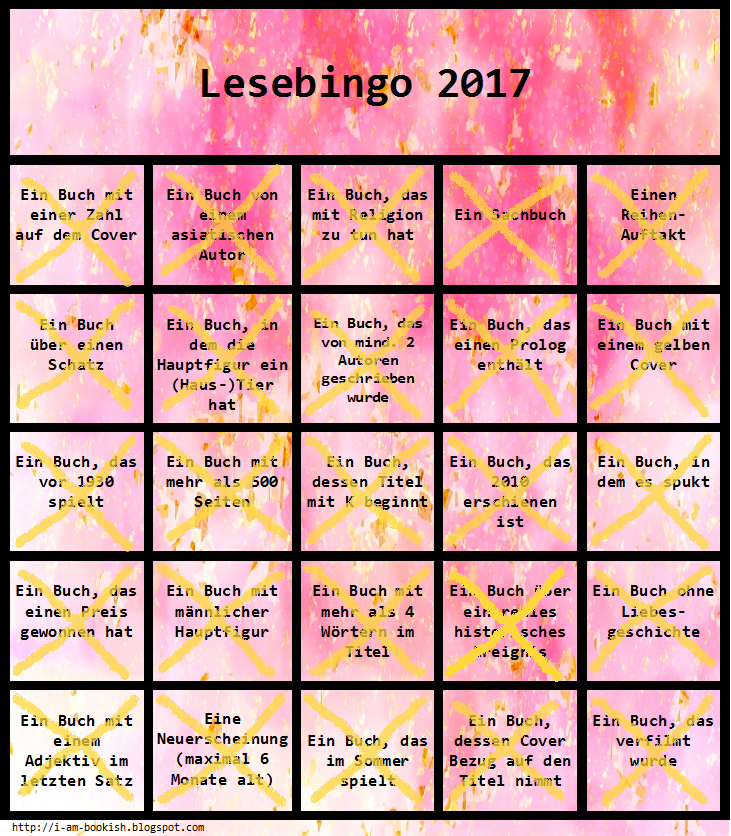 Ich freue mich sehr, dass Caroline von i am bookish auch dieses Jahr wieder ein Lese-Bingo veranstaltet. Das wird voraussichtlich die einzige Challenge sein, an der ich dieses Jahr teilnehme, aber dafür möchte ich endlich mal alle Kategorien schaffen!