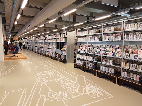 Mir gefällt übrigens sowohl in Almere, aber besonders in Amsterdam das Design mit den runden Formen bei dem Regaldesign und in Amsterdam mit der Treppe.