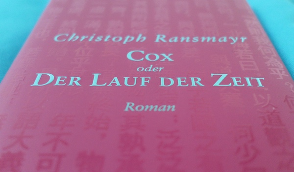 Ich mag die Aufmachung von Cox oder Der Lauf der Zeit von Christoph Ransmayr sehr gern. Das Cover ist schlicht, aber die schimmernden chinesischen Schriftzeichen und die leicht erhabene Schrift machen sehr viel her. Ich finde auch die Farbkombination sehr edel.
