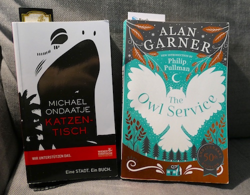 Heute sind die Kopfschmerzen zum Glück (fast) wieder weg und ich habe außerdem viel Zeit zum Lesen. Ich nehme von letzter Woche noch Katzentisch von Michael Ondaatje und Das Licht der letzten Tage von Emily St. John Mandel mit. Neu dazugekommen ist außerdem noch The Owl Service von Alan Garner. Das ist eins der Bücher, das meine Nichte in Hay-on-Wye gekauft hat und sie wartet schon ungeduldig darauf, dass ich es auch lese, weil ihr am Ende einiges unklar war. In diesem Jugendbuch wird der walisische Mythos von Blodeuwedd mit dem Leben von drei Jugendlichen verschränkt. Ich finde das Buch nicht ganz einfach zu lesen und bin also gespannt, ob ich am Ende die Unklarheiten für meine Nichte aufklären kann – oder vor denselben Fragen stehen werde.