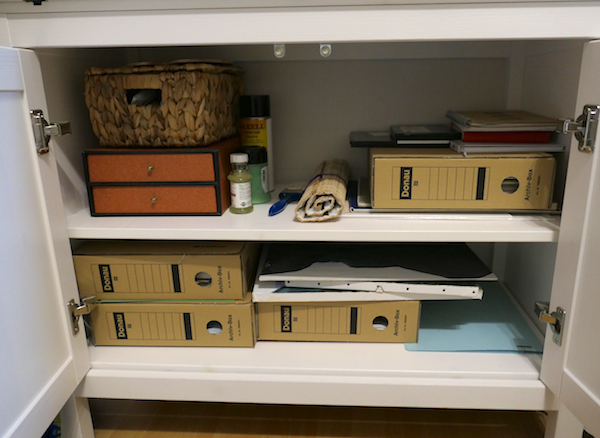 Uff, das war ein ziemliches Herumgeräume heute Nachmittag. Dafür erstrahlt nun der untere Teil meines Sekretärs im Wohnzimmer in neuer Ordnung: