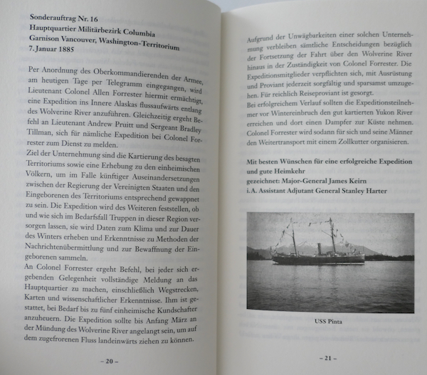Es geht darin um eine Expedition entlang des Wolverine Rivers in Alaska 1885, die in Briefen, Tagebucheinträgen, Bildern und Zeitungsartikeln erzählt wird. Ich hätte das Buch damals beinahe vom Fleck weg gekauft, mich aber doch noch zurückgehalten, weil ich zu dem Zeitpunkt gerade so viel anderes gelesen habe. Im Februar habe ich es mir nun gegönnt und auch sofort zu lesen begonnen. Bisher gefällt es mir sehr gut und ich hoffe, dass ich heute damit etwas weiterkomme.