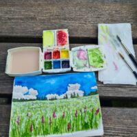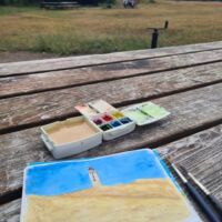 Wie schon bei kleineren Wanderungen hatte ich mein kleines Aquarellset mit dabei, das ich auch einige Male zum Einsatz gebracht habe. Diese Bilder sind während meiner Wanderung entstanden: