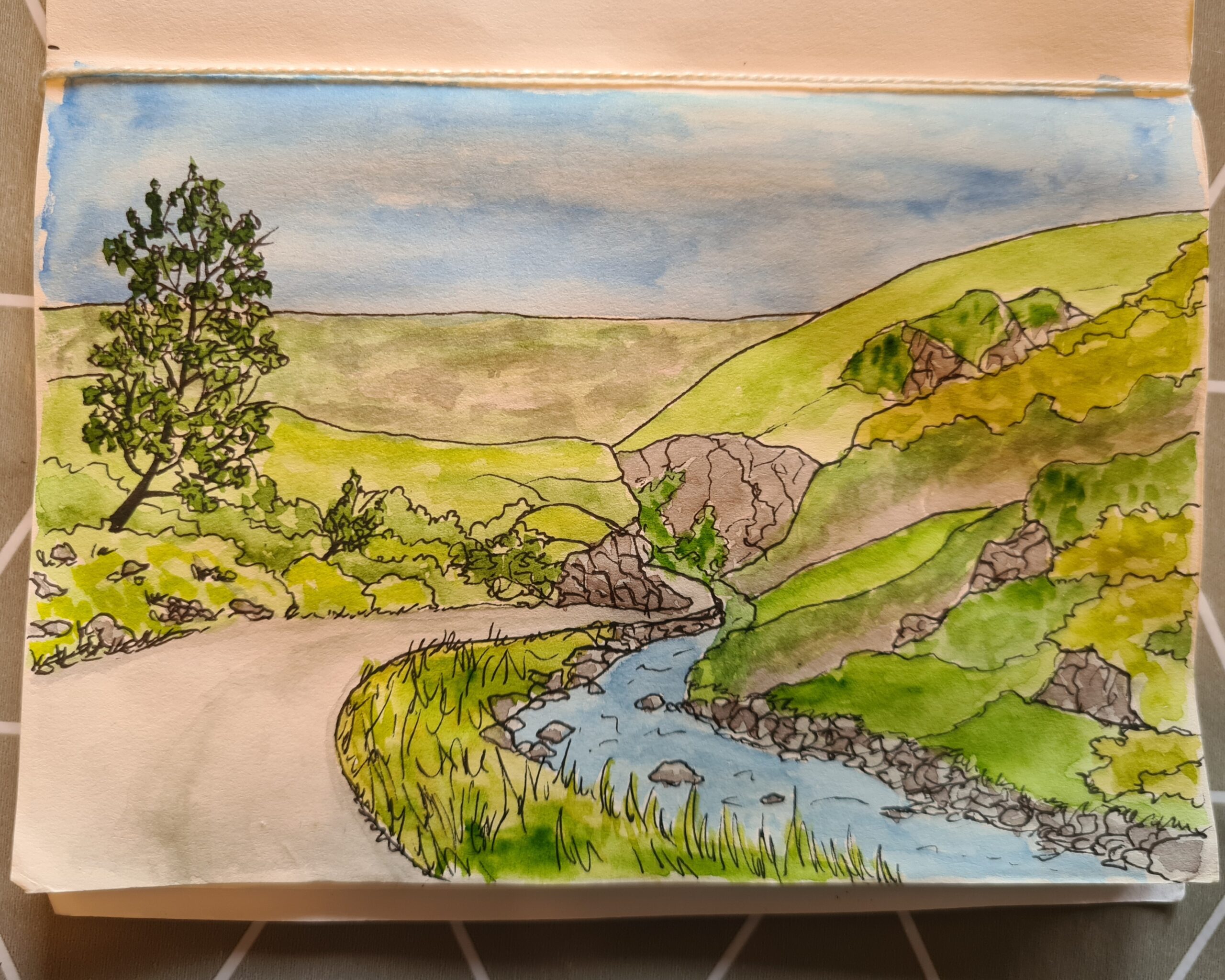 Wie schon bei kleineren Wanderungen hatte ich mein kleines Aquarellset mit dabei, das ich auch einige Male zum Einsatz gebracht habe. Diese Bilder sind während meiner Wanderung entstanden: