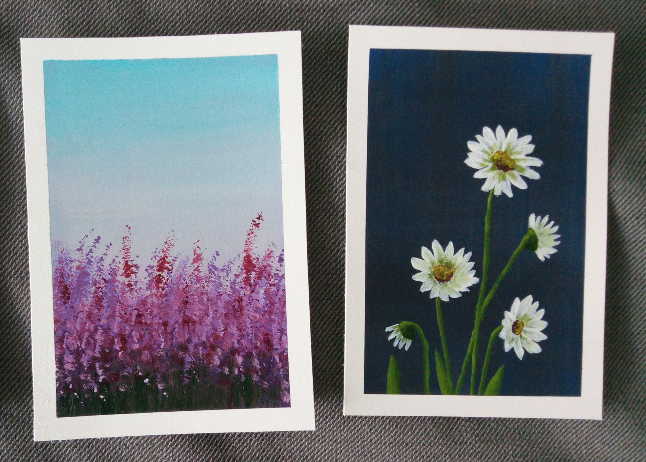 In diesem Jahr habe ich eine ganze Reihe von Glückwunschkarten gemalt. Als ich nun einen Beitrag mit den diesjährigen Weihnachtskarten machen wollte, habe ich festgestellt, dass ich einige ältere Karten nie hergezeigt habe. Das hole ich also hiermit nach. Der Vogel, der Flieder und die Katze sind mit Aquarellfarben gemalt, die anderen Bilder mit Acryl. Bei einigen davon bin ich Videotutorials gefolgt.