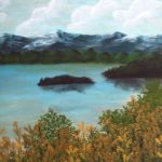 Illustration für meine Fantasywelt: See im Norden der Insel Lidane (Öl auf Malkarton; 2004)