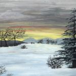 Eine kleine Winterlandschaft, mit der ich ein neues Papier ausgetestet habe (Acryl auf Aquarellpapier; 2006)